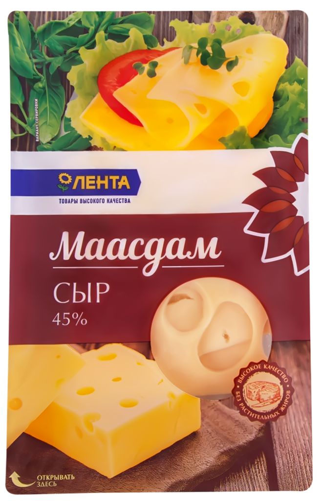Сыр ЛЕНТА Маасдам 45% без змж в нарезке