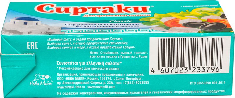 Сыр рассольный Сиртаки Classic для греческого салата 35% 330 г