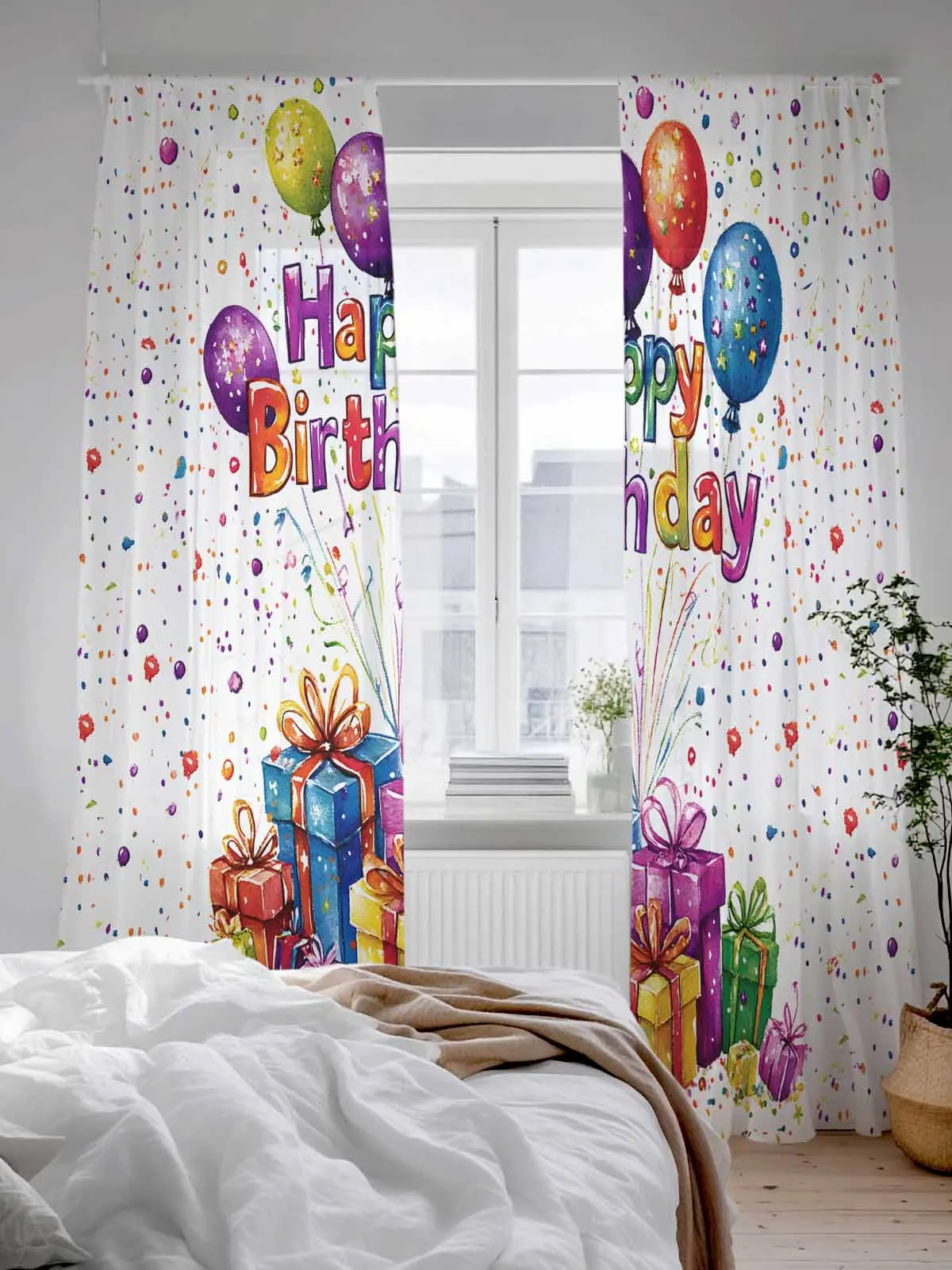 С Днем Рождения, красочные воздушные шары, тюлевые прозрачные шторы для гостиной, спальни, кухни, украшения, вуаль, шторы из органзы