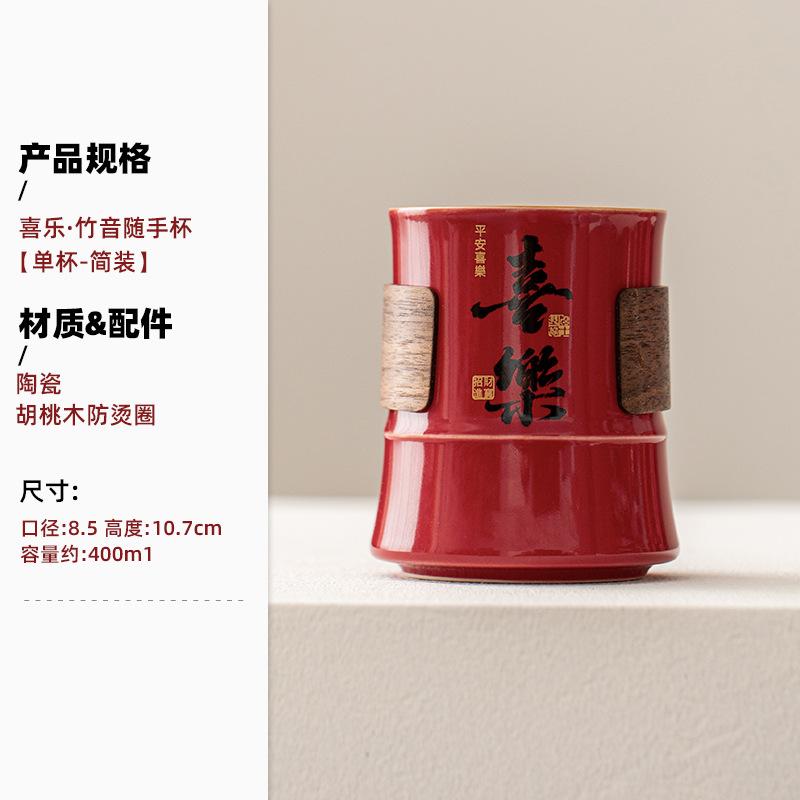 С Новым годом Красный бамбук Звуковая чашка Чашка для воды Чайная чашка с разделением для чая Керамическая чашка Сувенир от компании 400ml