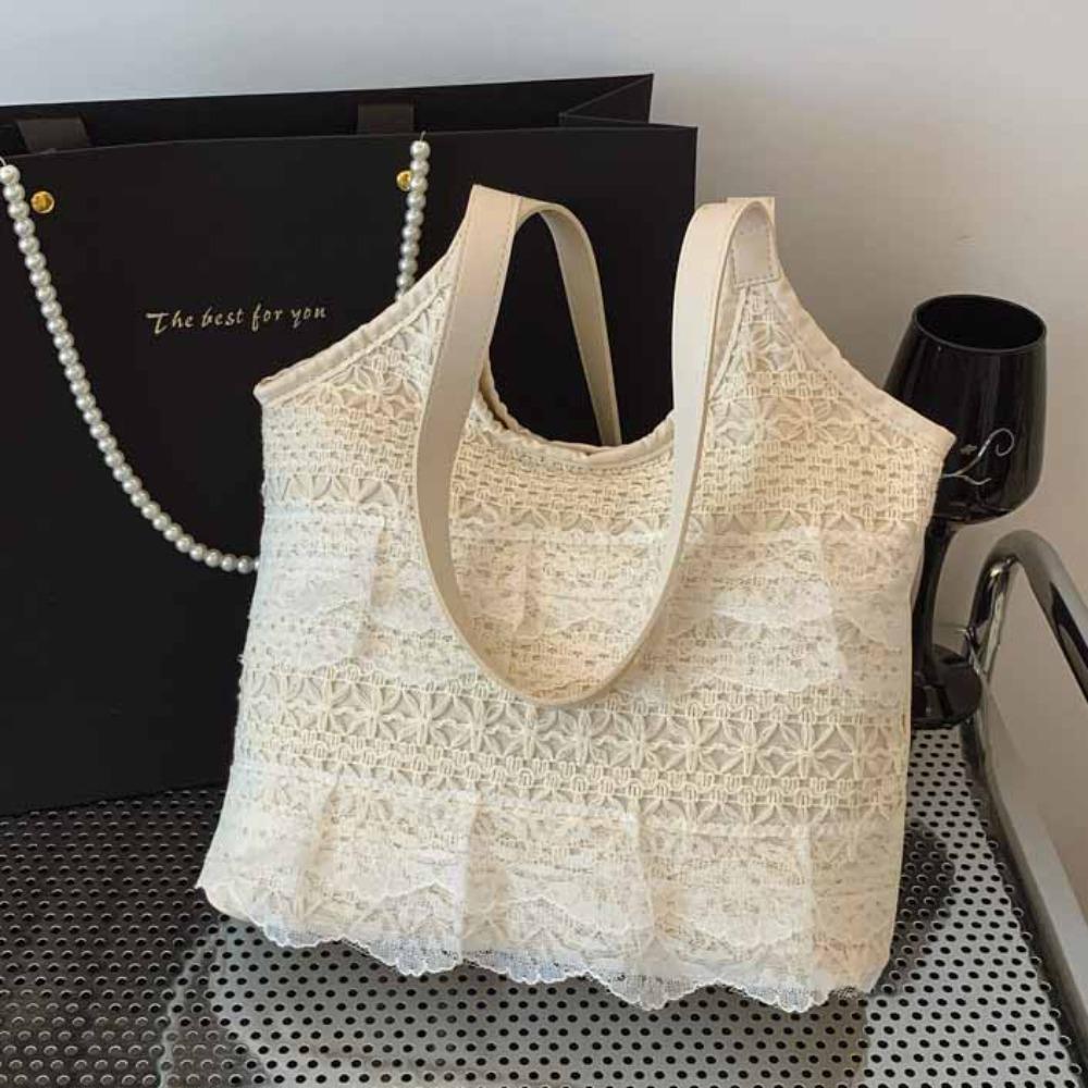 С лентой Простая холщовая сумка-тоут Сумка большой вместимости Сумка для хранения Кружевная сумка через плечо Путешествия without Ribbon