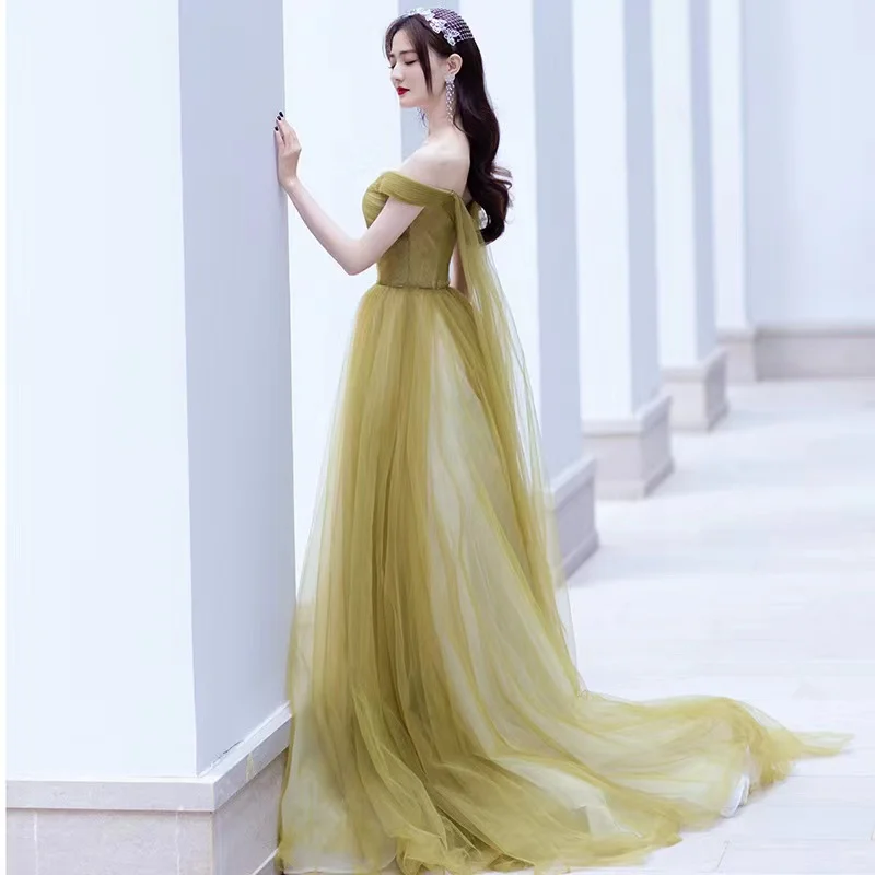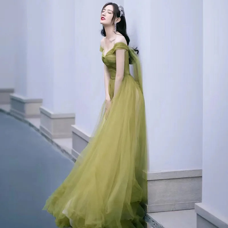 ТРАПЕЦИЕВИДНОЕ Тюлевое платье для выпускного вечера с открытыми плечами и V-образным вырезом, Плиссированные Длинные вечерние праздничные платья со шлейфом и открытой спиной
