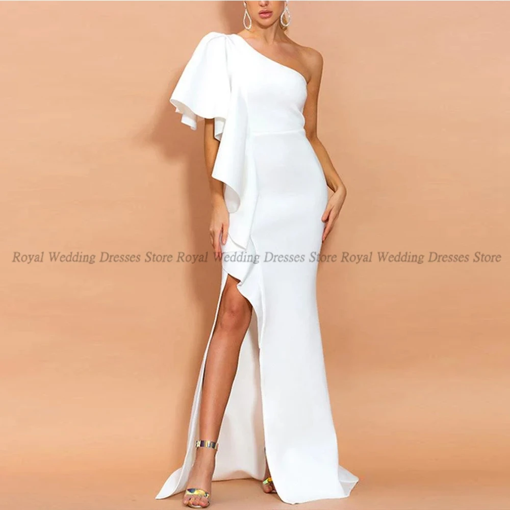 ТРАПЕЦИЕВИДНОЕ свадебное платье с вырезом лодочкой на одно плечо, атласное драпированное платье без рукавов с высоким разрезом, лето 2022, пл...