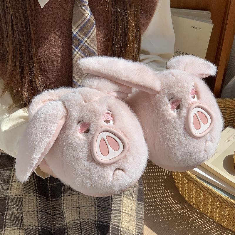 Тайи настоящие хлопковые тапочки из свиной шерсти зимние новые теплые нескользящие с набивным утолщенным пухом осенние милые хлопковые туфли 40-41 (suitable for 39-40) розовый