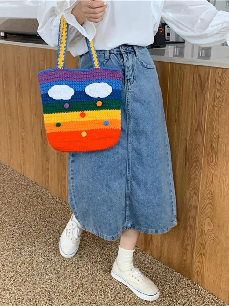 Тайская Радужная сумка с сердцем для девушек, плетеная Сумка через плечо, нишевая шерстяная вязаная сумка, Япония и Южная Корея