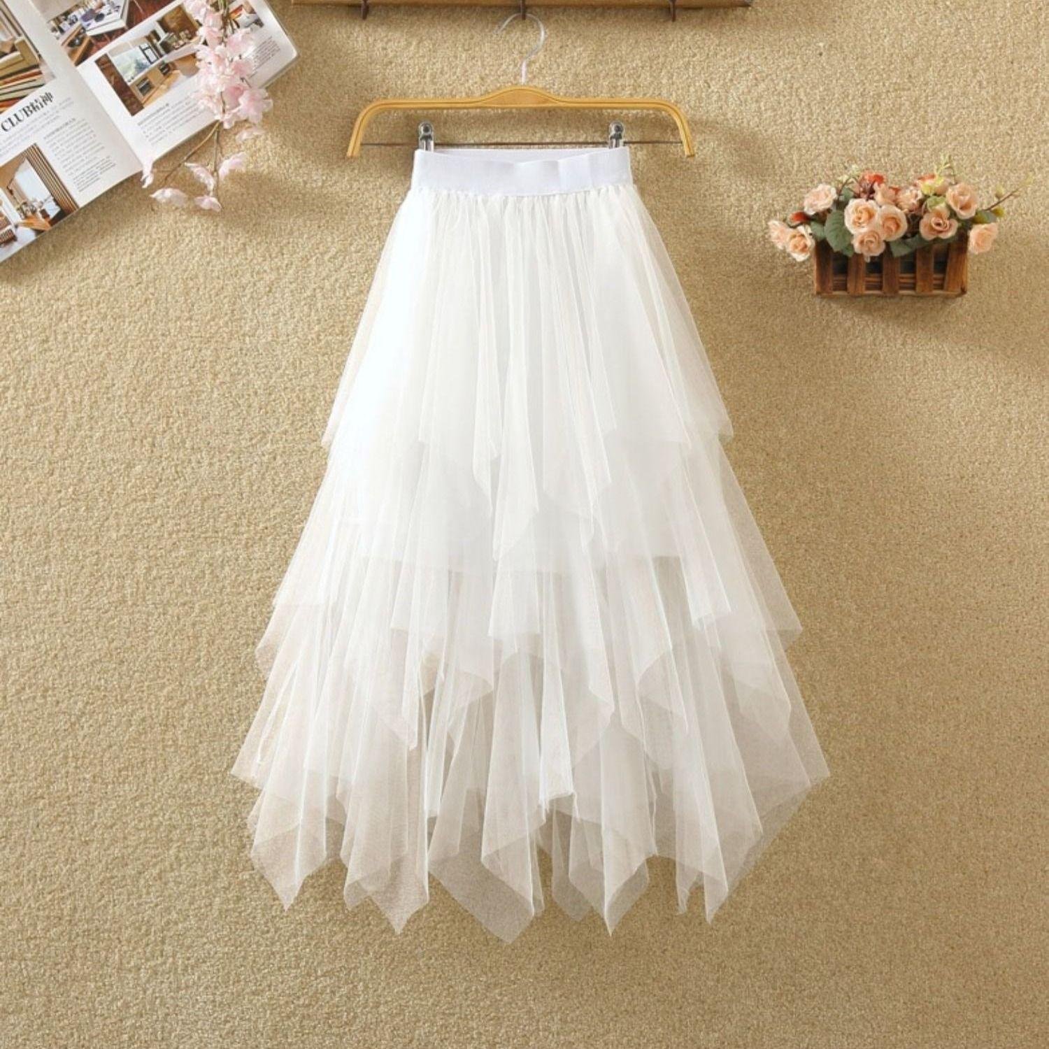 Талия Тюлевые юбки Женская модная эластичная сетчатая юбка-пачка с высокой талией Торфованное платье миди для девочек S белый