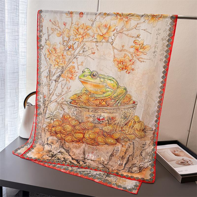 Тан Юнь Хуашан Печать Резка цветов Весенне-летний шелковый шарф Большой длинный шарф Высококачественная дорожная шаль Защита от солнца Женский шарф Косынка 180*70cm