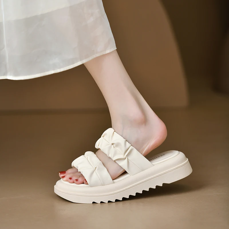 Тапки женские на платформе, сланцы средней высоты, мягкая пляжная обувь, роскошные Шлепанцы из полиуретана, тапки для дома, лето, 2023