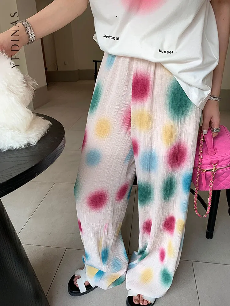 Yedinas Colorful Streetwear Wide Leg Pants Women High Waist Elastic Korean Style Loose Trousers Femme Summer Autumn Chic Ladies