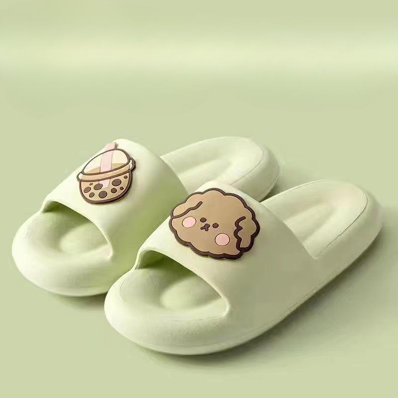 Тапочки для ванной с медведем, женские летние тапочки, милые туфли с мультяшными облаками для женщин, для дома и отдыха, мягкие толстые пляжные мужские сандалии 36-37 зелёный