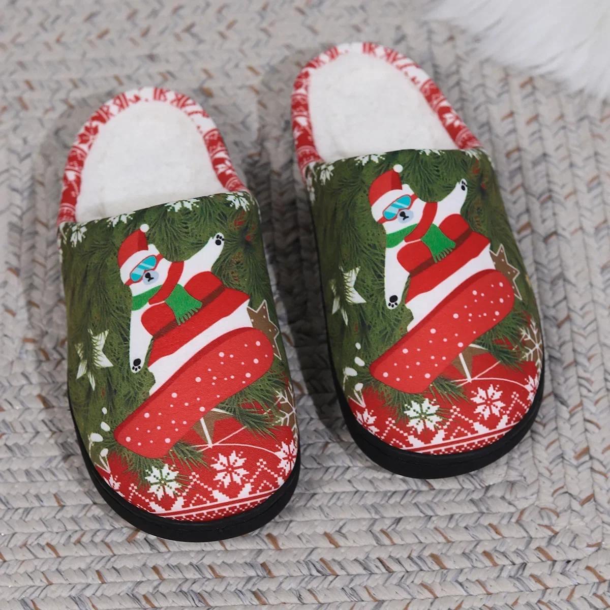 Тапочки для женщин, домашние, парные, зимние, лыжные, рождественские, домашние, теплые, нескользящие, хлопковые, женские, милые, с толстой подошвой, женские тапочки 44-45 зелёный