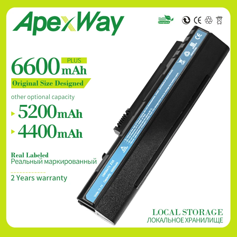 Аккумуляторная батарея Apexway, 6 ячеек, черная, для Acer Aspire One zg5, A110, A150, D250, ZG5, P531h, для замены батарей LC.BTP00.043, UM08A71, UM08A31, UM08A73