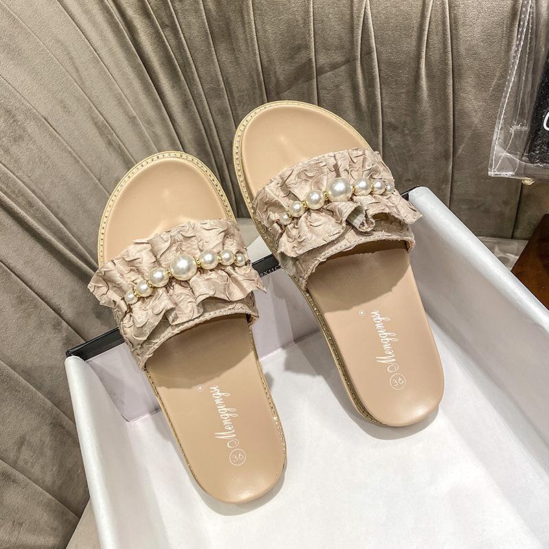 Тапочки женские летние для улицы модные новые феи сандалии с открытым носком на плоской подошве большого размера - 33