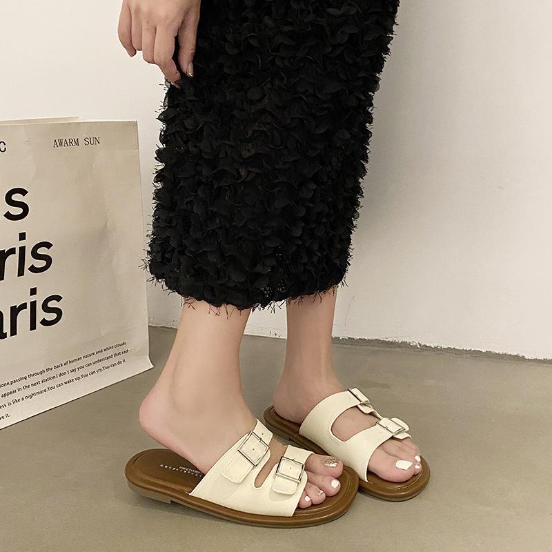 Тапочки женские летние 2025 новые ретро сказочные повседневные мягкие пляжные сандалии на плоской подошве для моря импортная торговля 35 бежевый