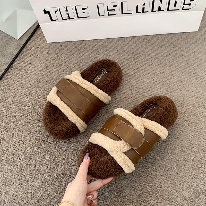 Тапочки из овечьей шерсти женские 2025 новая осень мягкая кожа вечерний ветер толстая подошва нескользящие супермягкие хлопковые мопы 40 коричневый