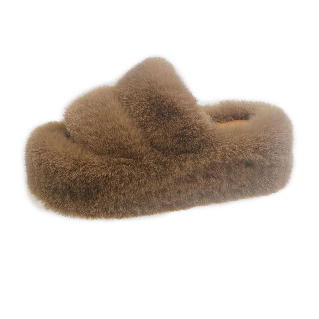 Тапочки из плюша на подошве для верхней женской одежды, новинка 2024 года, осенне-зимние теплые хлопковые тапочки на плоской подошве, размер 35-42 35 хаки