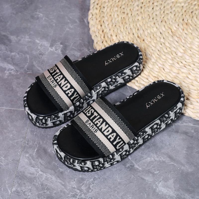 Тапочки на платформе European Station, новинка 2025 года, лето, маленькие ароматные, стильные, с надписью «одно слово», большой размер, наклонный каблук, повседневная одежда, тапочки 40 чёрный