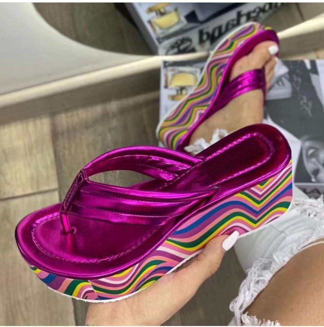 Тапочки на толстой подошве женские летние 23 новые импортные товары большого размера с толстым подошвой и рисунком в виде елочки модные пляжные тапочки классные 36 розы красного
