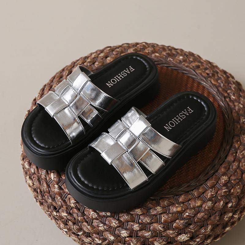 Тапочки с мягкой подошвой для беременных, женские новые модели лета 2025 года, универсальная уличная обувь, широкая стопа, толстая подошва, прохладные тапочки 40 серебряный