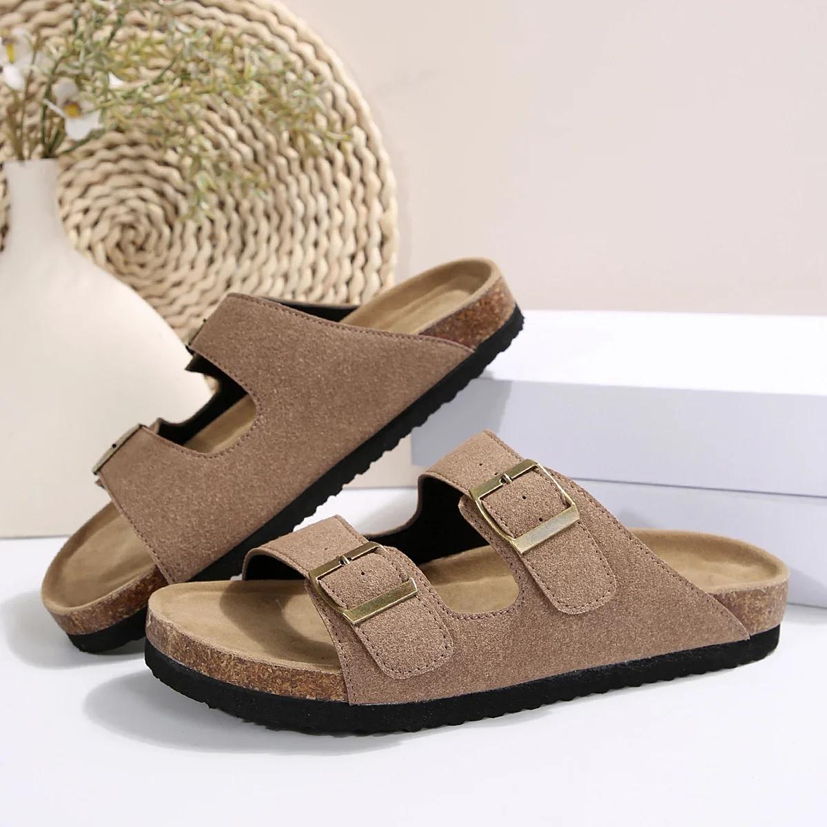 Тапочки с пряжками, открытые тапочки с открытым носком, роскошные нескользящие пробковые тапочки на подошве, женские пляжные уличные домашние шлепанцы, сандалии 37