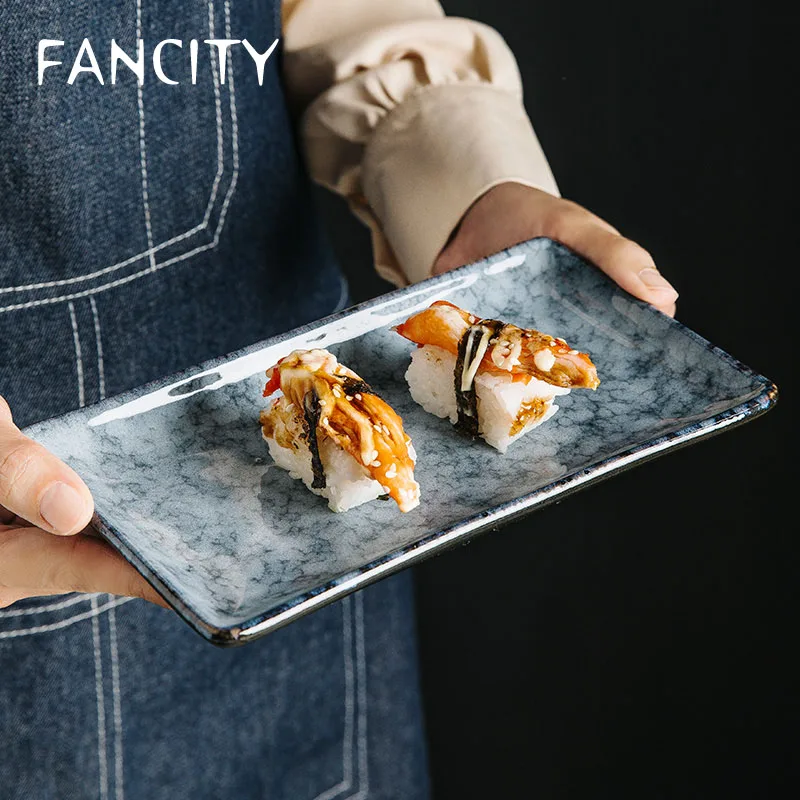 Тарелка для суши, керамическая обеденная тарелка, стильная прямоугольная тарелка, домашняя креативная жаростойкая посуда