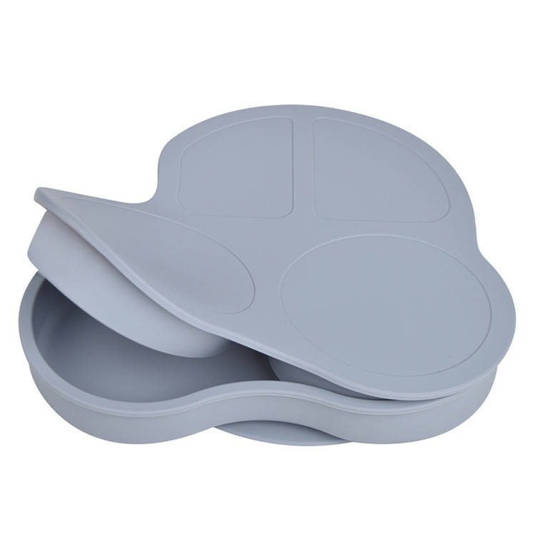 Тарелка силиконовая секционная на присоске машинка Серая, Серый