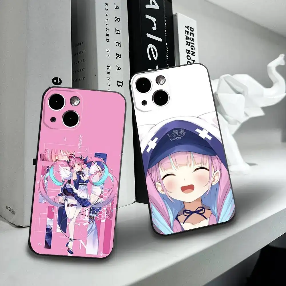 M-Minato A-Aqua H-Hololive Phone Case For iPhone16,15,14,13,12 Mini 11 Pro XR,X,XS,MAX 7,8 Plus Silicone Cover Soft Black