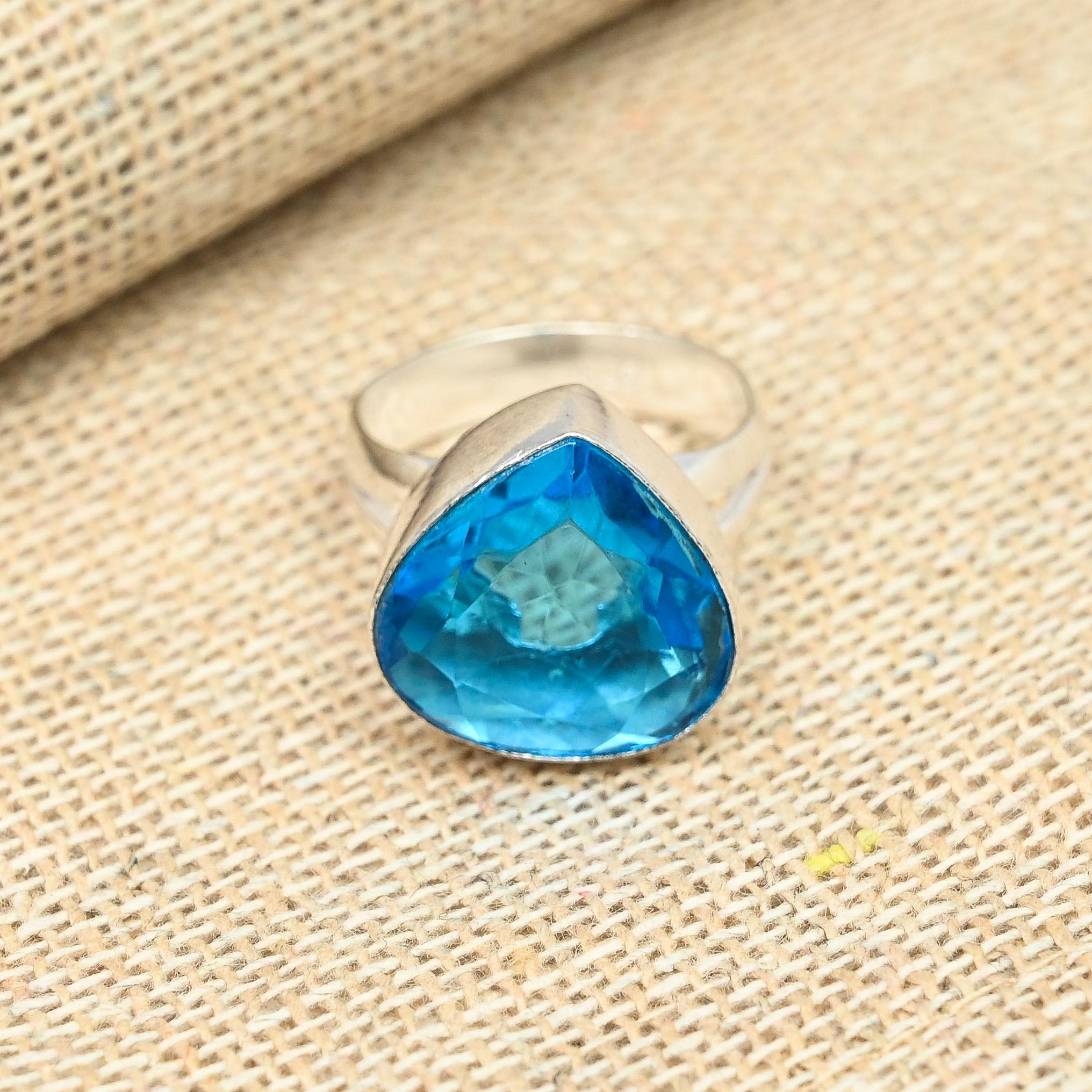 Твердое стерлинговое серебро 925 пробы, драгоценный камень с синим топазом, ювелирные изделия ручной работы, изящное кольцо всех размеров 12 синий