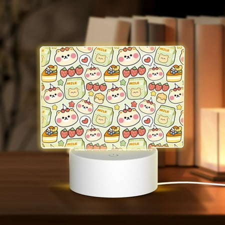 Salelf Cute Cherry Bear Face LED Light Base with Clear Acrylic Sheet 3D Night LED Lamp Display Base USB Cable for Living Room Bedroom Room Bar Gift Lamp