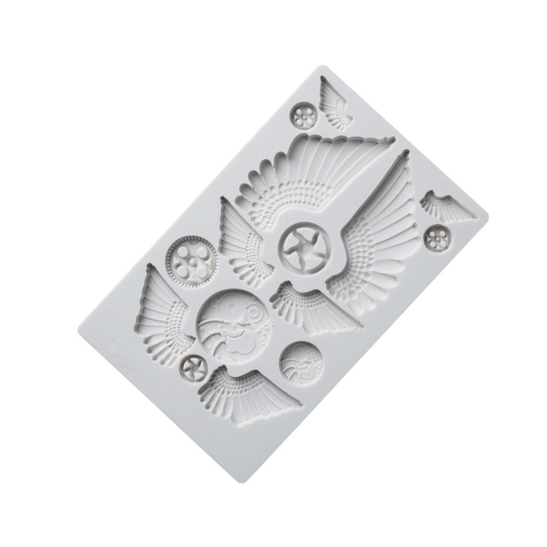 Творческие механические шестерни, линии крыла, шоколадная форма, сахарный торт, силиконовая форма, домашняя выпечка, инструменты для торта, формы для помадки 19.8x12.4x0.9cm белый