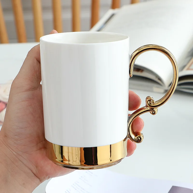Творческий Керамика большой вместимости, Роскошная золотая ручка Кофе кружка с ложкой Керамика Кофе Чай молока питейная посуда кружки фарф...