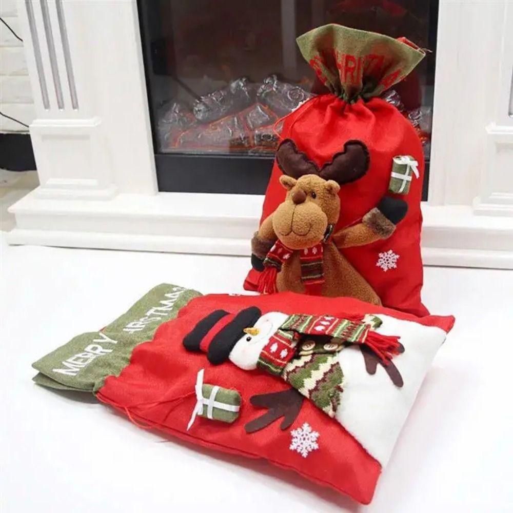 Творческий рюкзак Санта-Клауса из льна с милым узором Подарочная сумка для вечеринки, ежедневного фестиваля