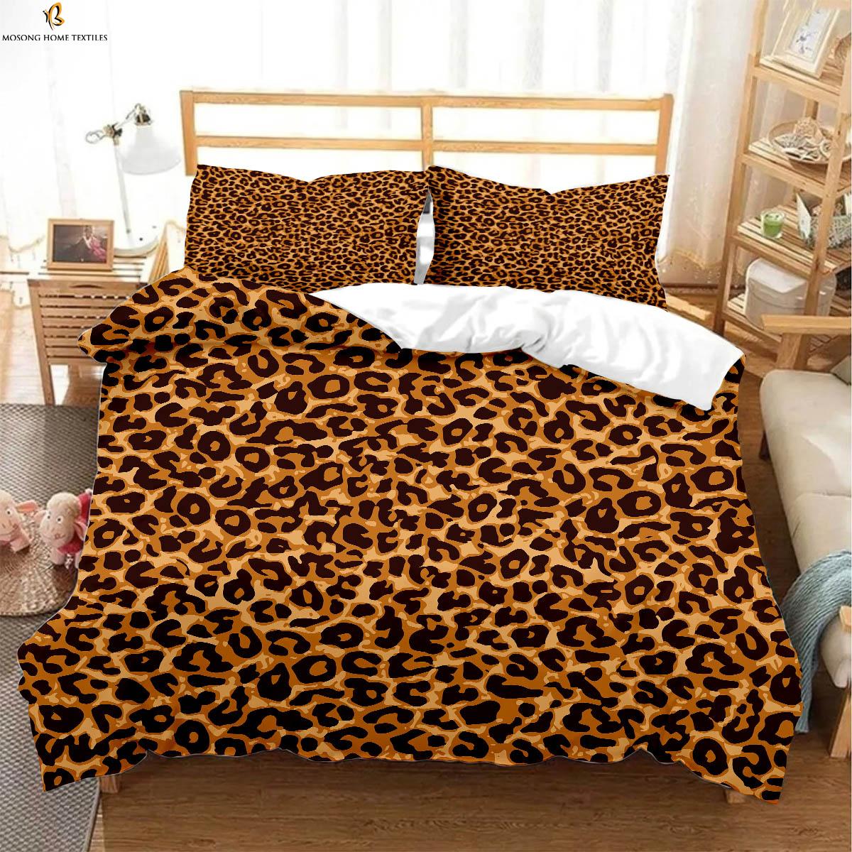 Текстура меха леопарда с 3D-печатью, пододеяльник, комплект постельного белья, пододеяльник, наволочка, 3 предмета, 100% полиэстер, машинная стирка US 264x228cm 3PCS