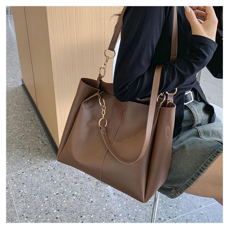 Текстурированная женская сумка, новая модная сумка для мамы и ребенка большой вместимости, текстурированная сумка-мессенджер на плечо в ретро-стиле для поездок на работу с магнитной застежкой темно-коричневого