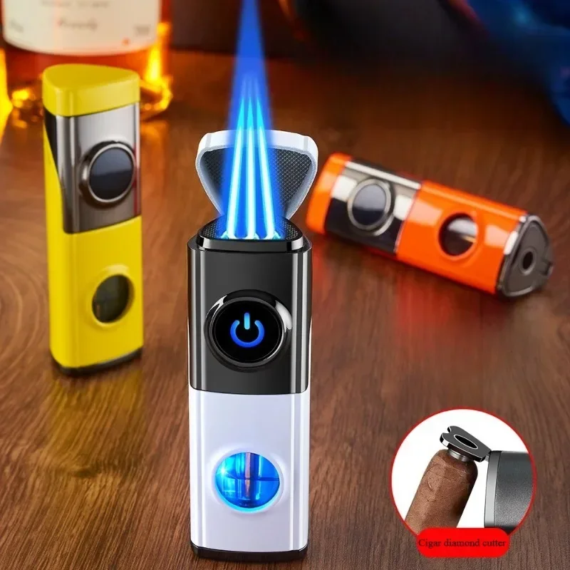 Трехжелезная зажигалка для сигар, многоразовая бутановая ветрозащитная зажигалка для сигар, мощный портативный воспламенитель, аксессуары для курения