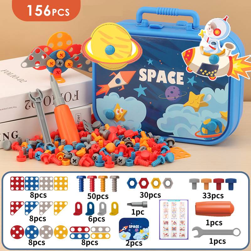 Тематический Космос Динозавр Детский Ящик для Инструментов Сделай Сам Электрическая Дрель Развивающая Игрушка для Мальчиков Space 156pcs