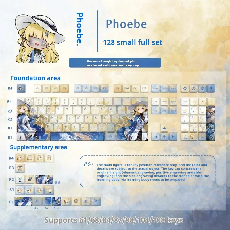 Тема Фиби, колпачок для ключей Chreey Pbt, пятисторонняя термосублимация, ремесло, киберспортивные игры, анимация, механическая клавиатура, колпачки для мыши