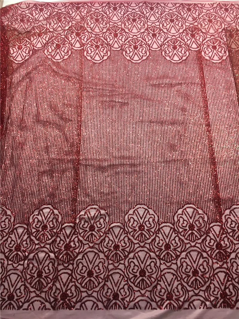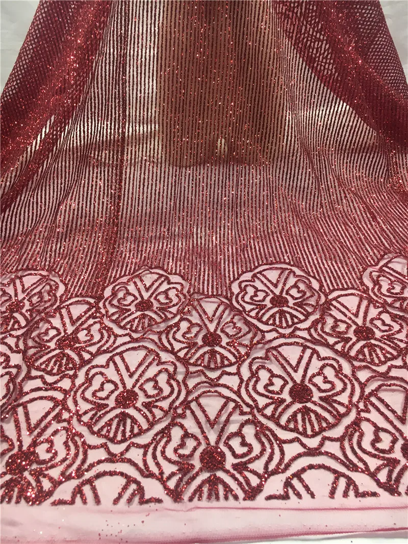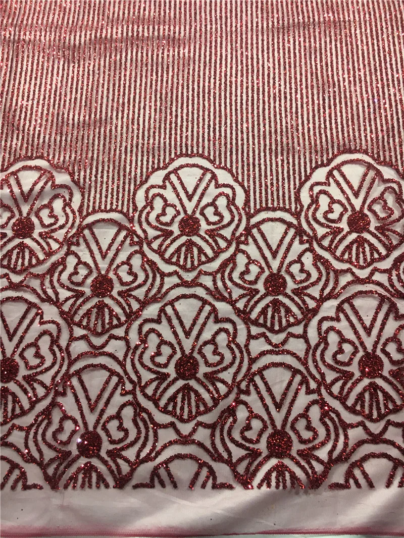 Темно-Красная Блестящая блестящая кружевная ткань с блестками, африканская фатиновая сетчатая ткань для свадебного платья/вечернее платье H-49