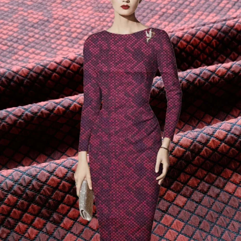 Темно-красная тканая жаккардовая ткань для шитья своими руками, приятная для кожи ветровка, костюм, модная одежда, ткань, полиэстер