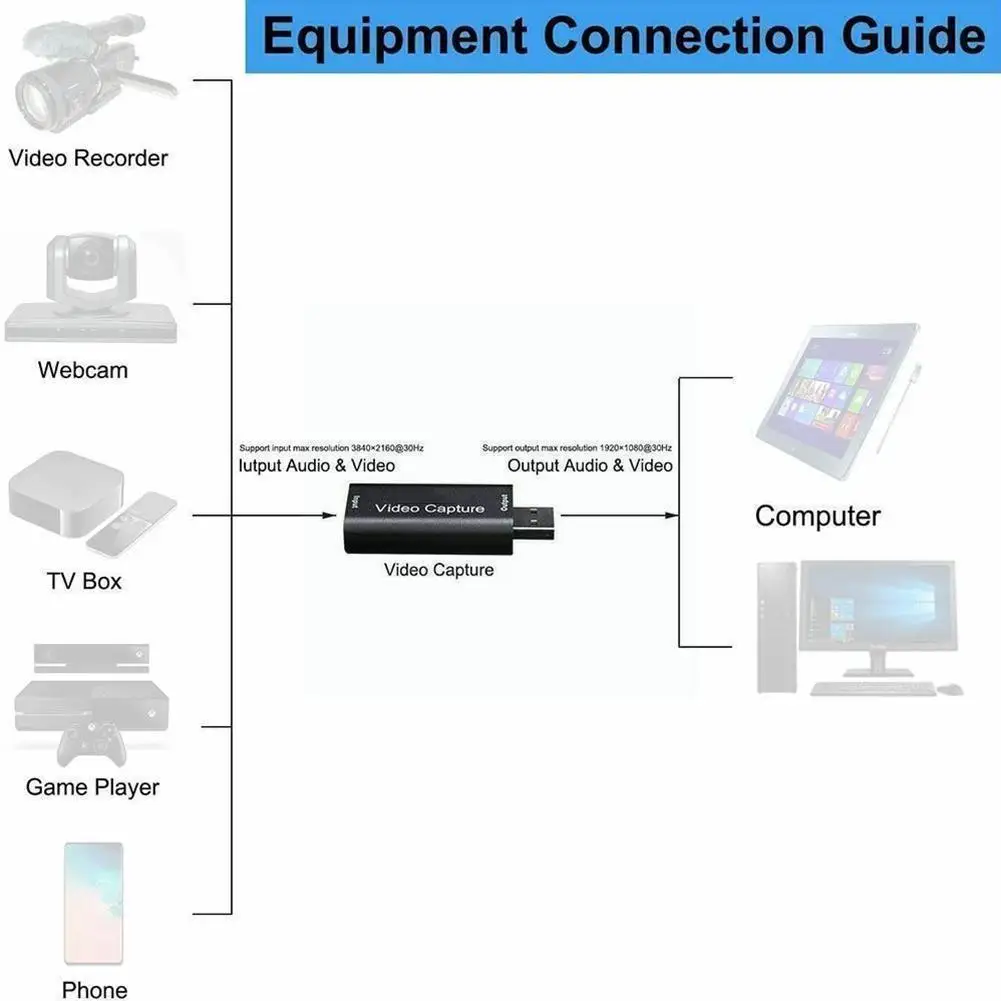 4k Video Capture Card Usb 3.0hdmi-compatibleible Video Grabber Record Box For Ps4 Game Dvd Camcorder Camera Recording R2z0