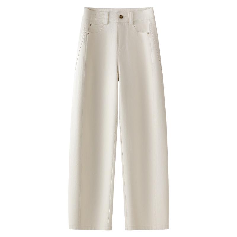 Темно-синие джинсы прямого кроя с завышенной талией и облегающего силуэта: Женский бестселлер 2025 года для весны и осени L грязно-белый