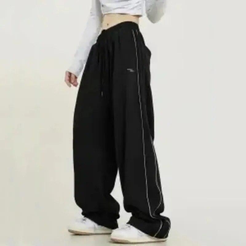 Темно-синие женские спортивные штаны в стиле Харадзюку, весна-лето, уличная одежда с эластичной резинкой на талии и карманами, модные спортивные повседневные брюки для бега M