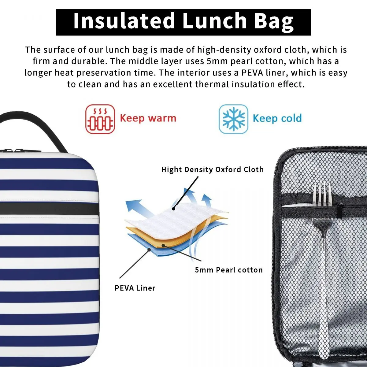 Темно-синяя и белая ланч-сумка с ручкой, винтажная полосатая карманная сумка-холодильник на молнии, Пляжная многоразовая Термосумка из хлоп...