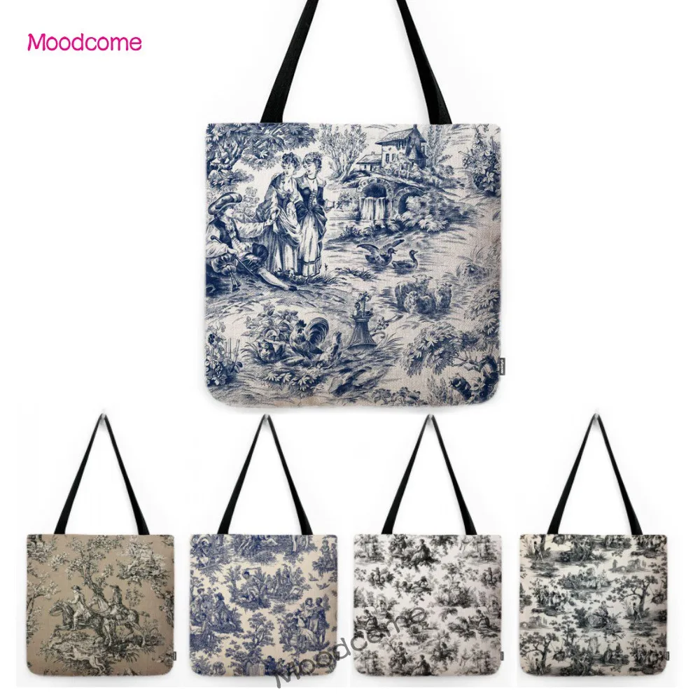 Темно-синяя, черная, белая газета, постер, стиль, холст, мотив, винтажная водостойкая Льняная сумка-тоут, сумка через плечо