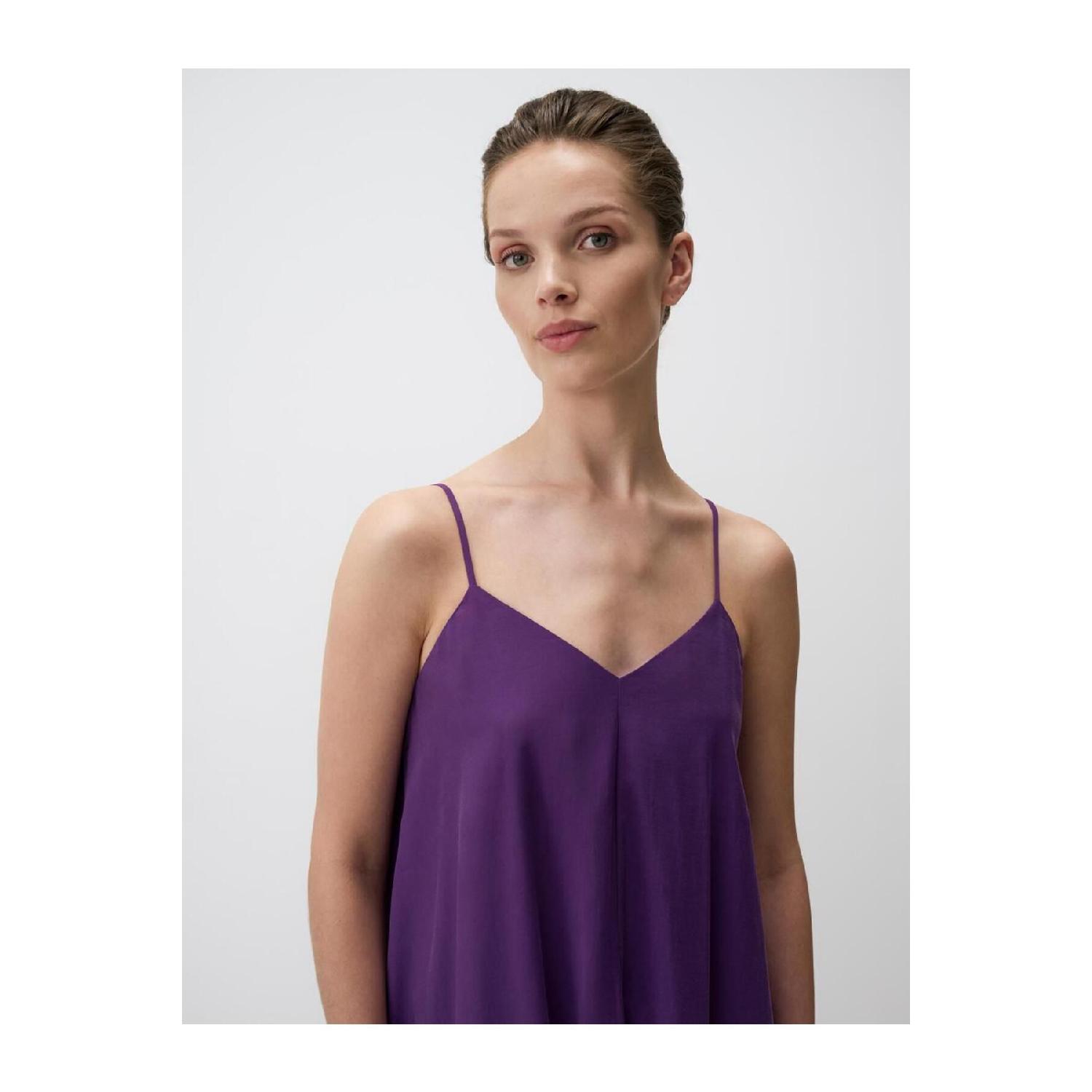Темно-фиолетовое платье-миди свободного кроя с V-образным вырезом и бретелями S