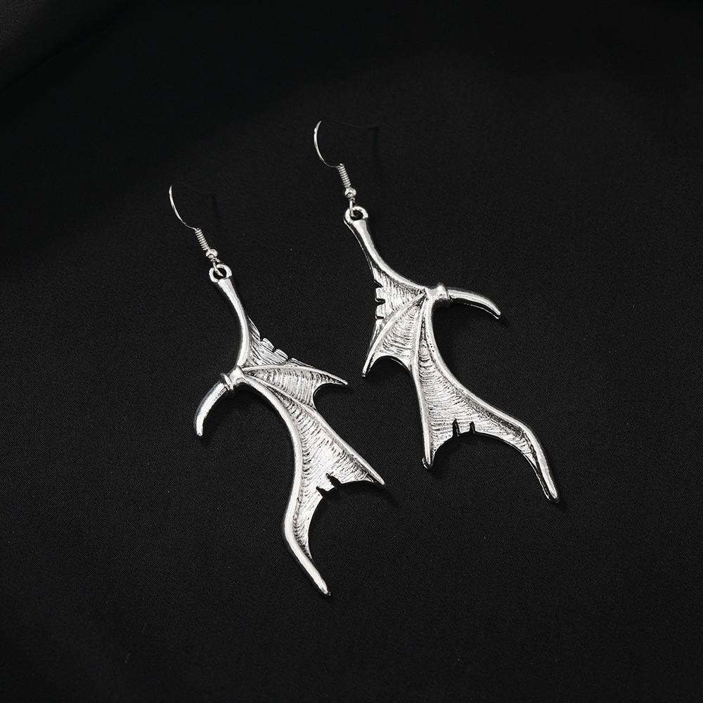 Темные готические украшения с серьгами из сплава в виде черепа летучей мыши для женщин в стиле Хэллоуина AntiqueSilver