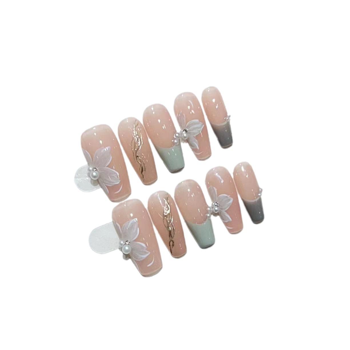 Темпераментная камелия нейл-арт ручной работы нежный темпераментный стиль ледово-прозрачный нюдовый цвет французская ручная роспись накладные ногти патч Large L