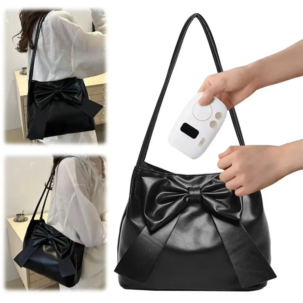 Темпераментная однотонная сумка через плечо из искусственной кожи с бантом, сумка-ведро, портативная сумка-тоут INS, роскошная модная сумка в корейском стиле, украшение для подмышек