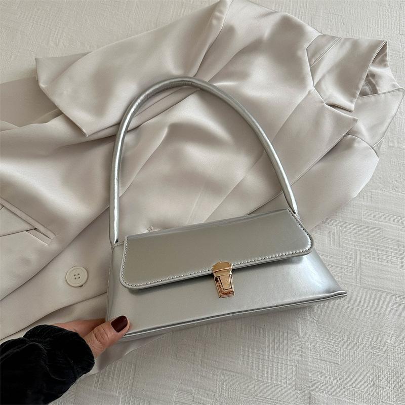 Темпераментная простая однотонная сумка через плечо с замком женская 2025 весна и лето новая нишевая сумка под мышкой высокой ценности женская сумка серебряный