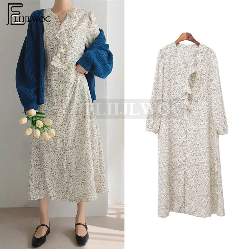 Темпераментные платья, популярные женские платья в Корейском стиле, милое белое платье с оборками в горошек для девочек, длинное платье 198 (ц...